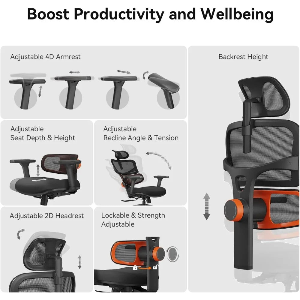 Experience next-level comfort and support with this premium ergonomic office chair, featuring auto-following lumbar support, 4D adjustable armrests, and customizable seat depth — ideal for serious work-from-home professionals or modern office setups.